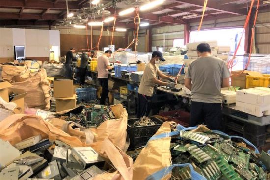 広大な敷地に集められた不要となった中古パソコン等を再使用、リサイクルをすることで新たな価値が生まれます。